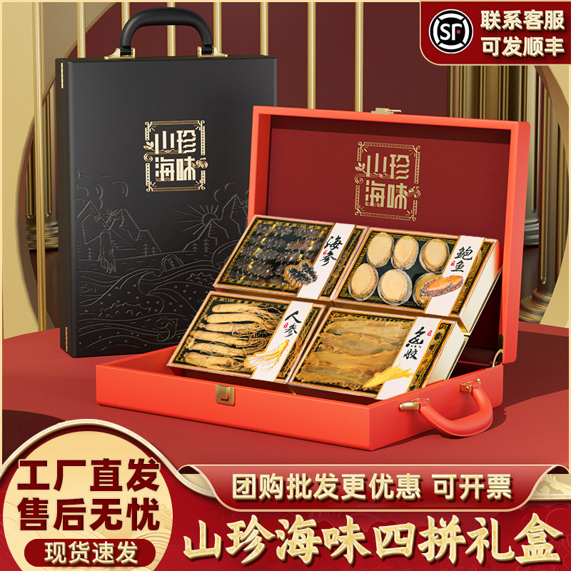 山珍海味四拼礼盒装海鲜干货高端大连海参鲍鱼八珍礼品高档送送礼