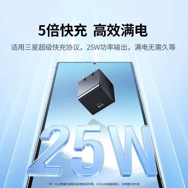 绿联25W充电器超级快充适用S10+s23手机s21ultra闪充TypeC安卓数据线套装折叠屏通用mini插头充电底座