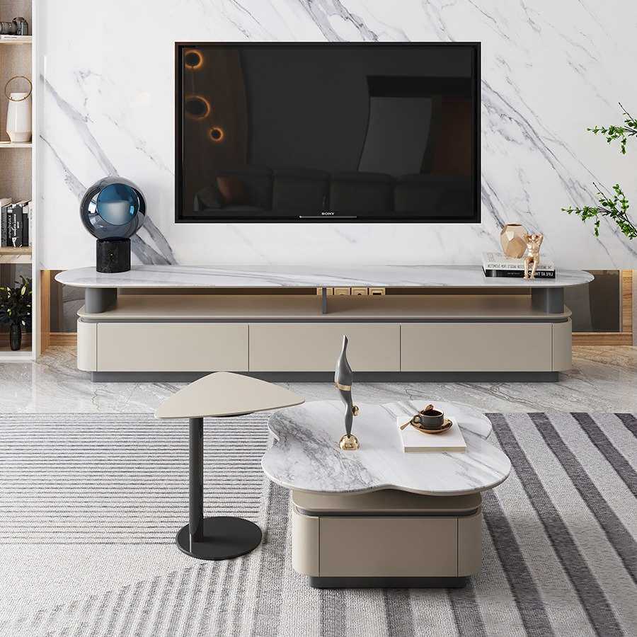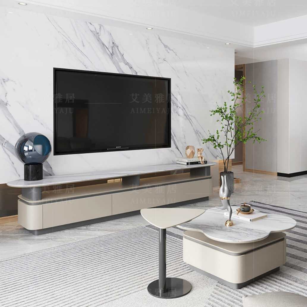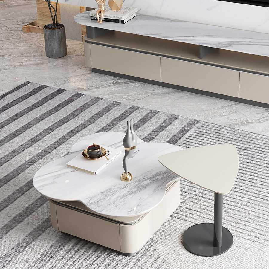 轻奢茶几微晶石电视柜组合异形花朵小户型客厅网红极简超晶石茶台