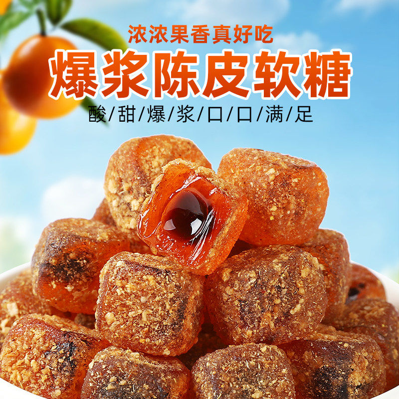 爆浆陈皮糖新会陈皮软糖话梅水果什锦糖果零食袋装500g喜糖夹心