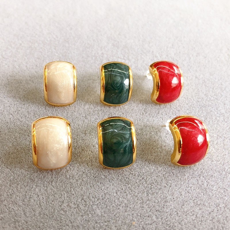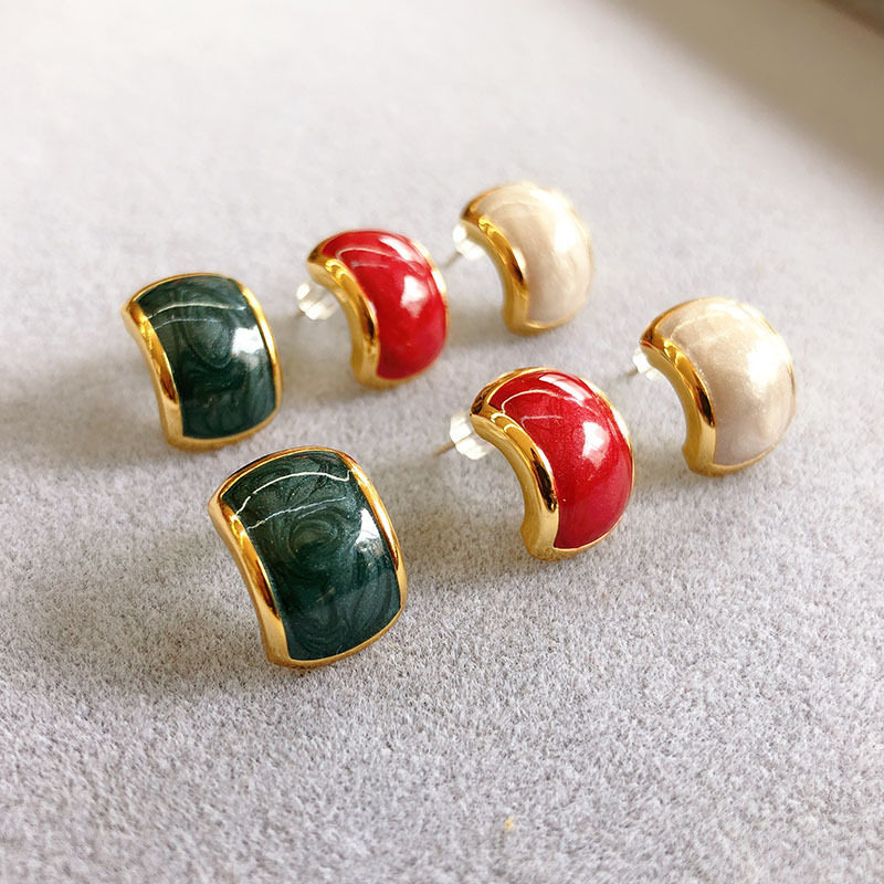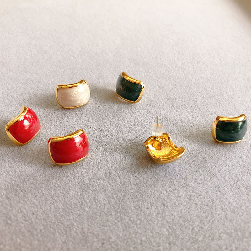 跨境新款时尚珐琅釉小清新耳钉欧美气质S925银针复古耳饰一件代发