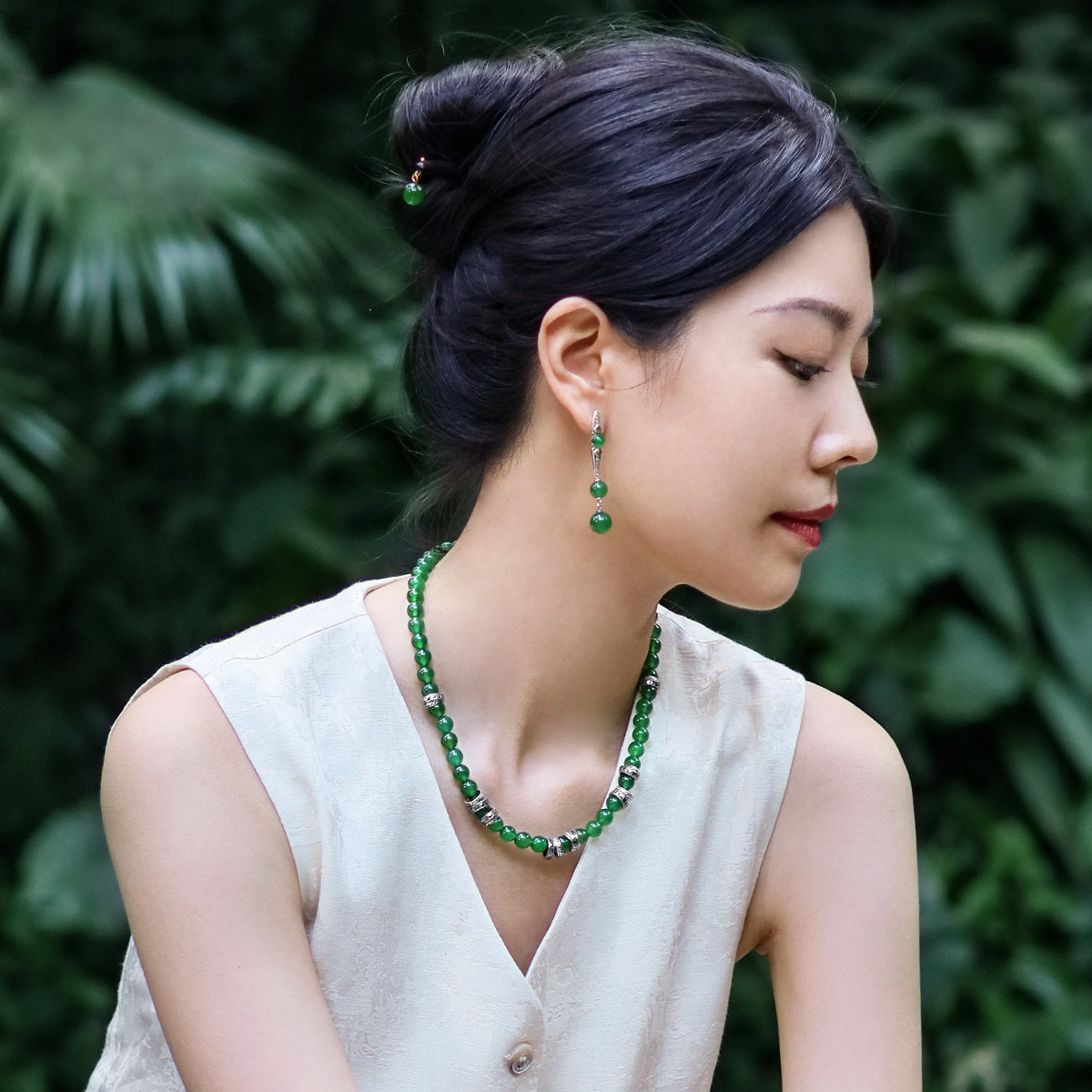 MGS/曼古银金风玉露925银玛瑙耳环复古小众设计女新中式耳钉耳饰