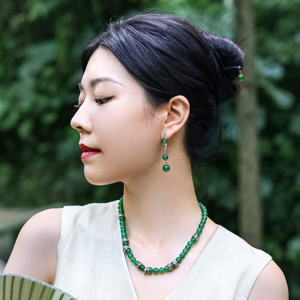 复古新中式国风墨竹扇形流苏耳环气质耳坠新款高级感个性气质耳饰