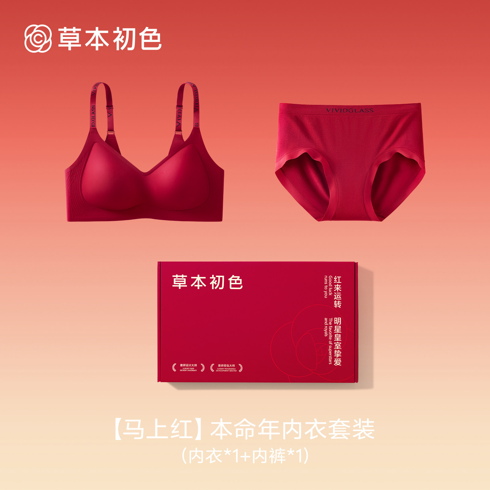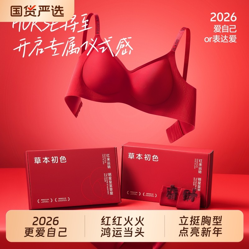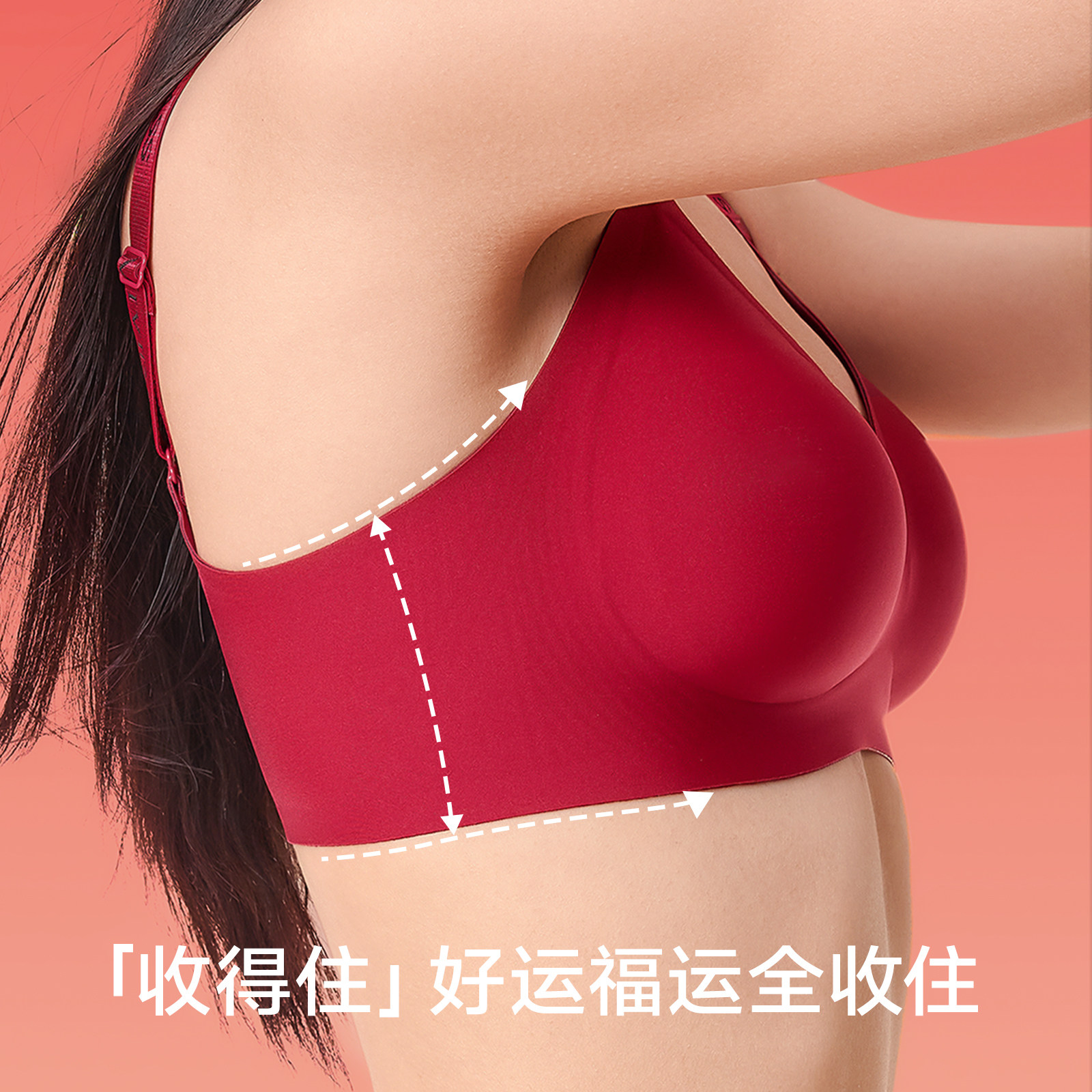 草本初色本命年红内衣套装女反重力小胸聚拢无钢圈收副乳文胸固定