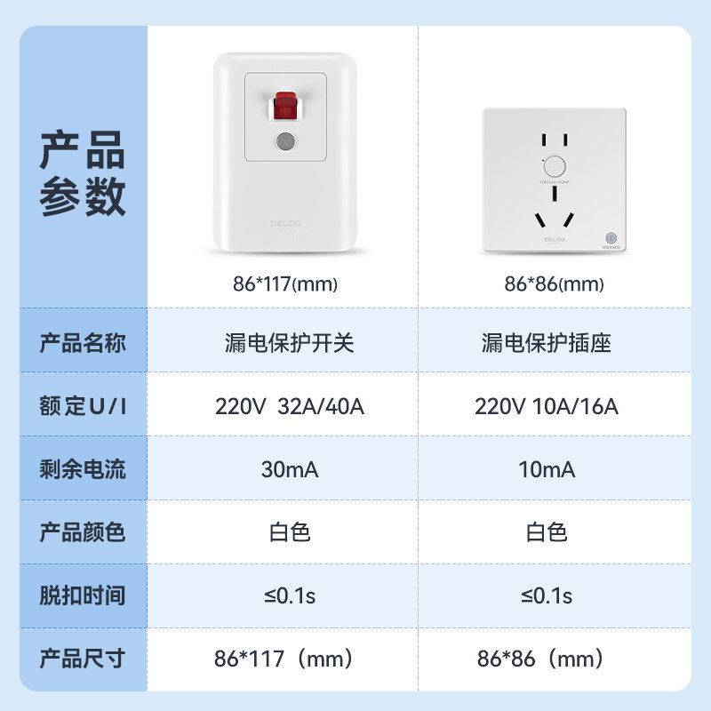 德力西开关漏电保护插座86型暗装空调16a家用32A电源漏保带开关