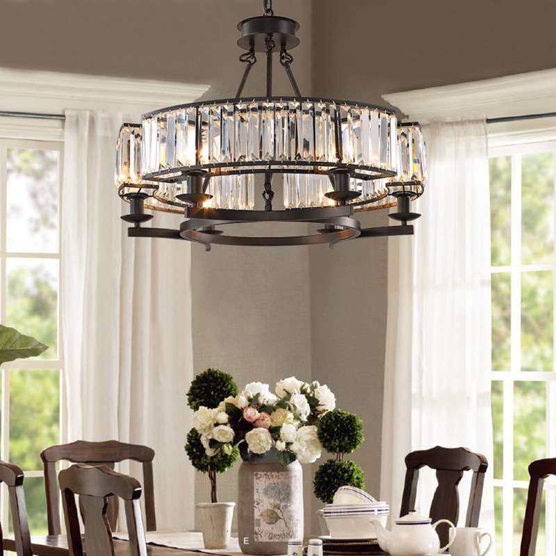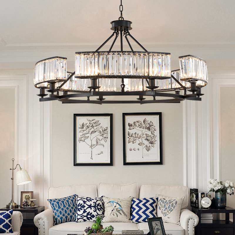 美式水晶吊灯简约大气客厅灯轻奢吸吊两用大厅灯跨境灯具厂家