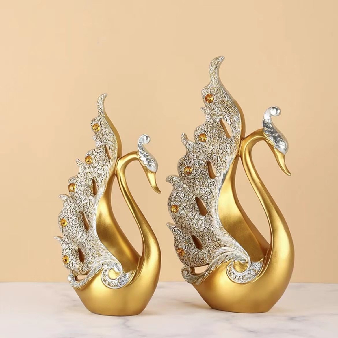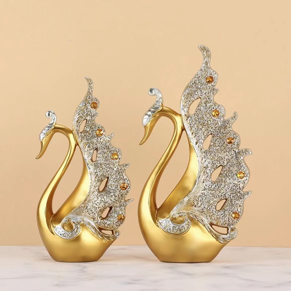 创意礼物欧式酒柜电视柜客厅家居工艺装饰树脂孔雀摆件两款选天鹅
