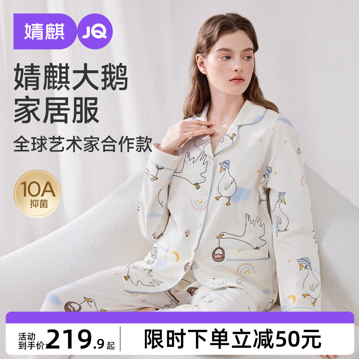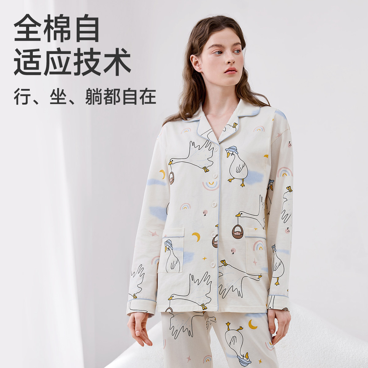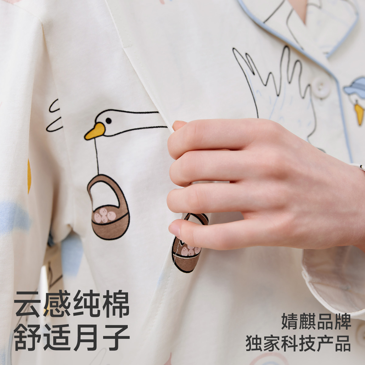 十月结晶兜兜鸭纯全棉吸汗月子服哺乳睡衣7A抗菌12月家居服女冬季