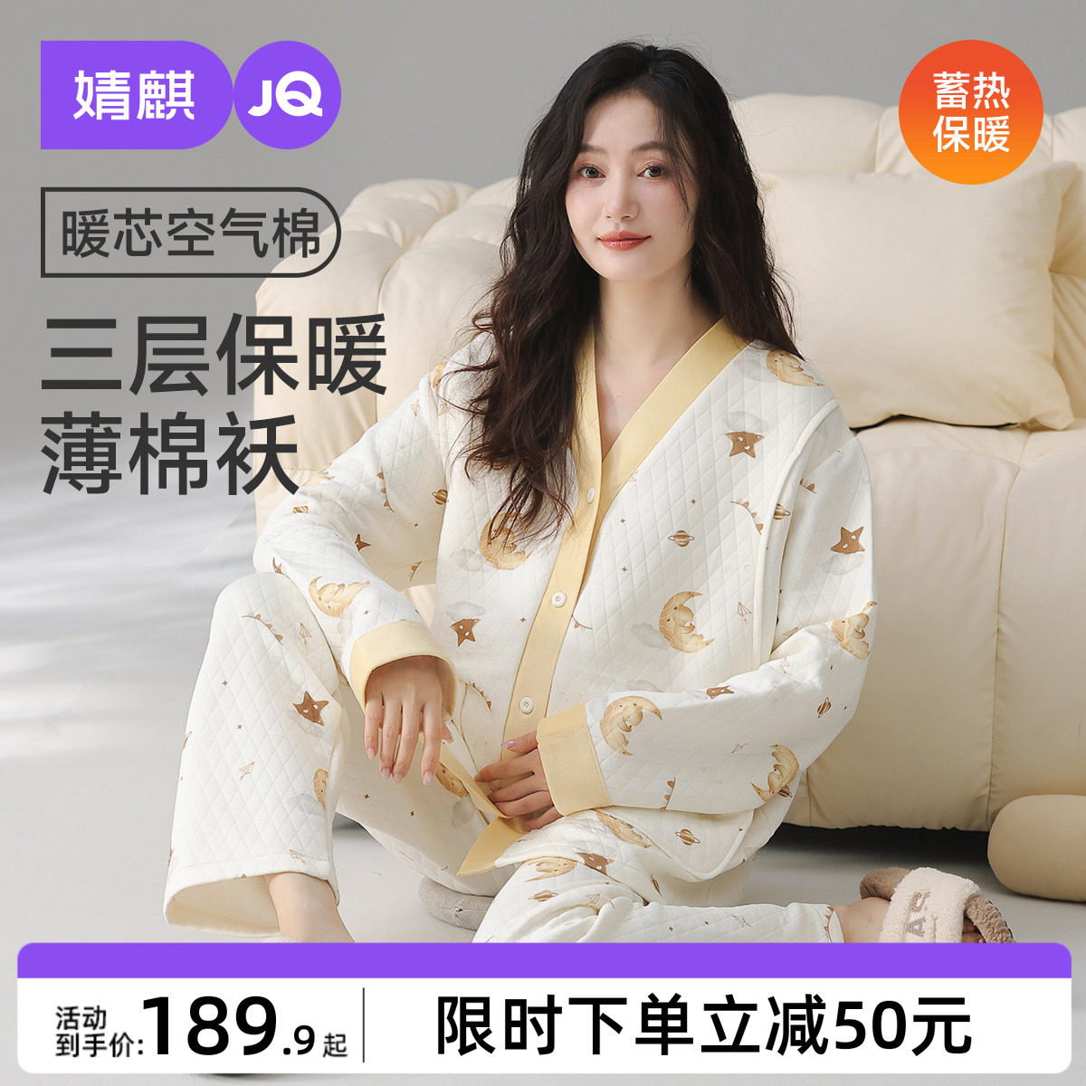 婧麒月子服冬季空气棉孕妇睡衣保暖加厚产妇哺乳喂奶家居服套装女
