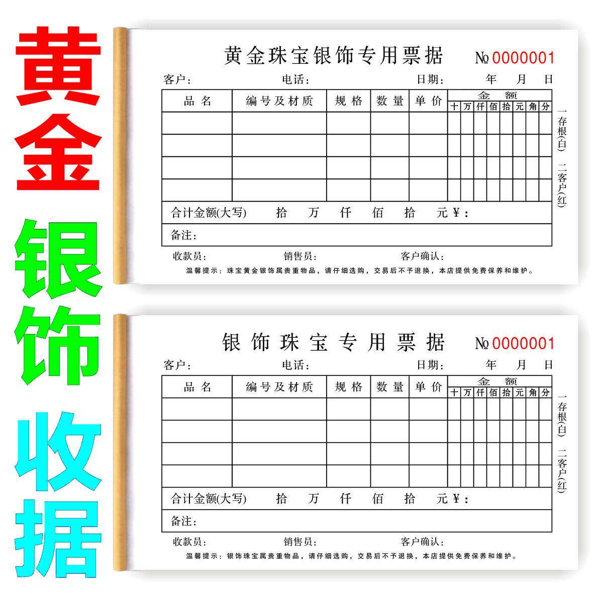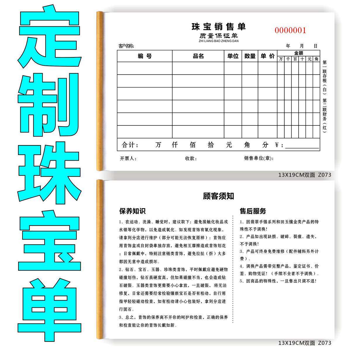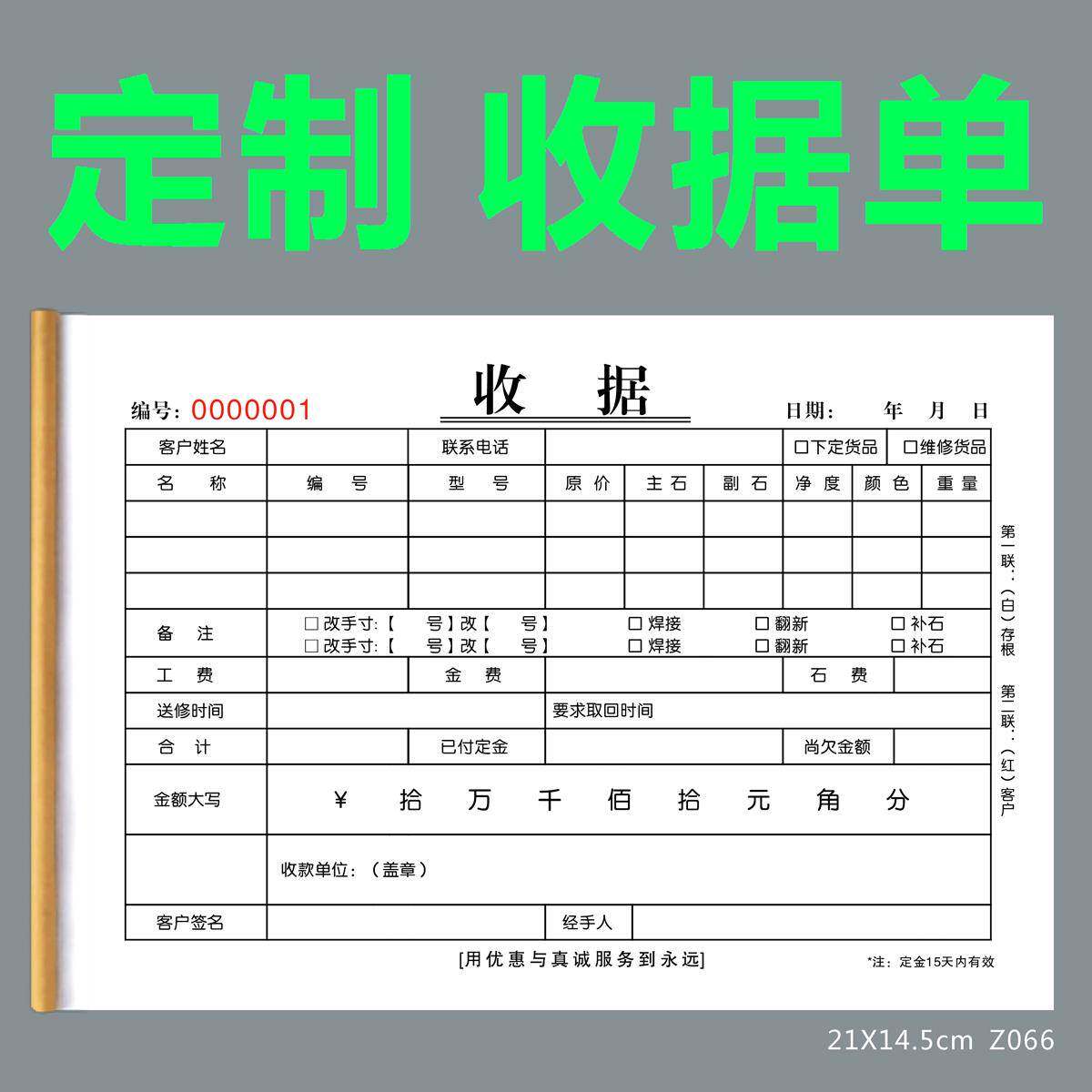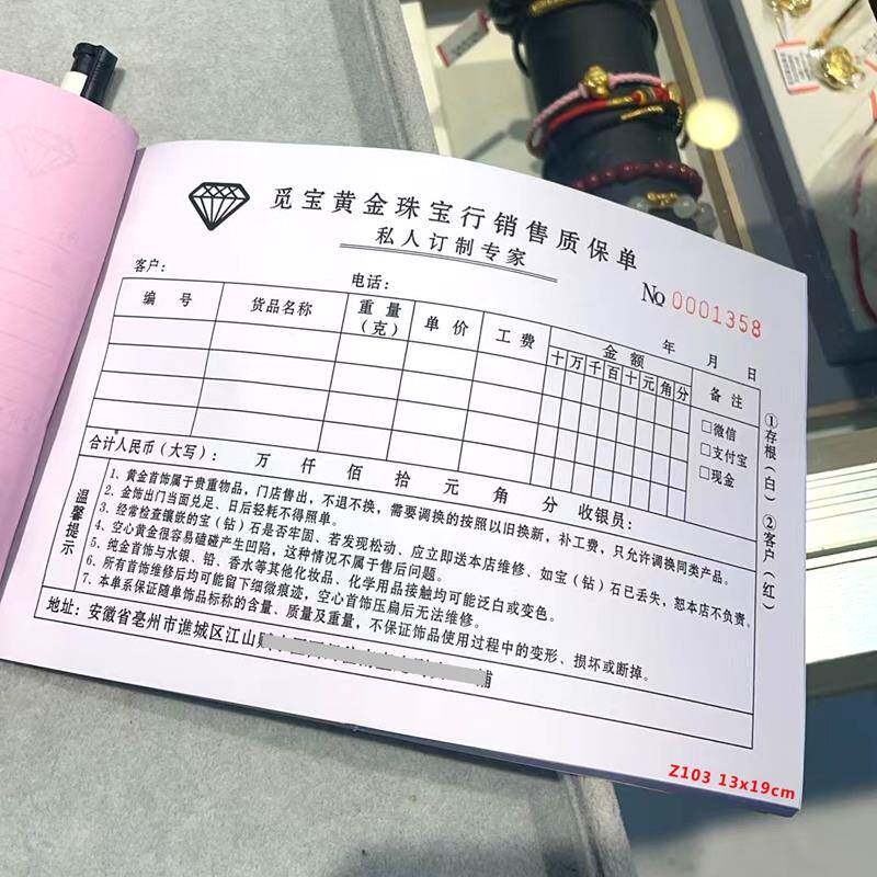 饰品珠宝首饰销售票据 旧料回收单 黄金票据收据 银饰翡翠加工单