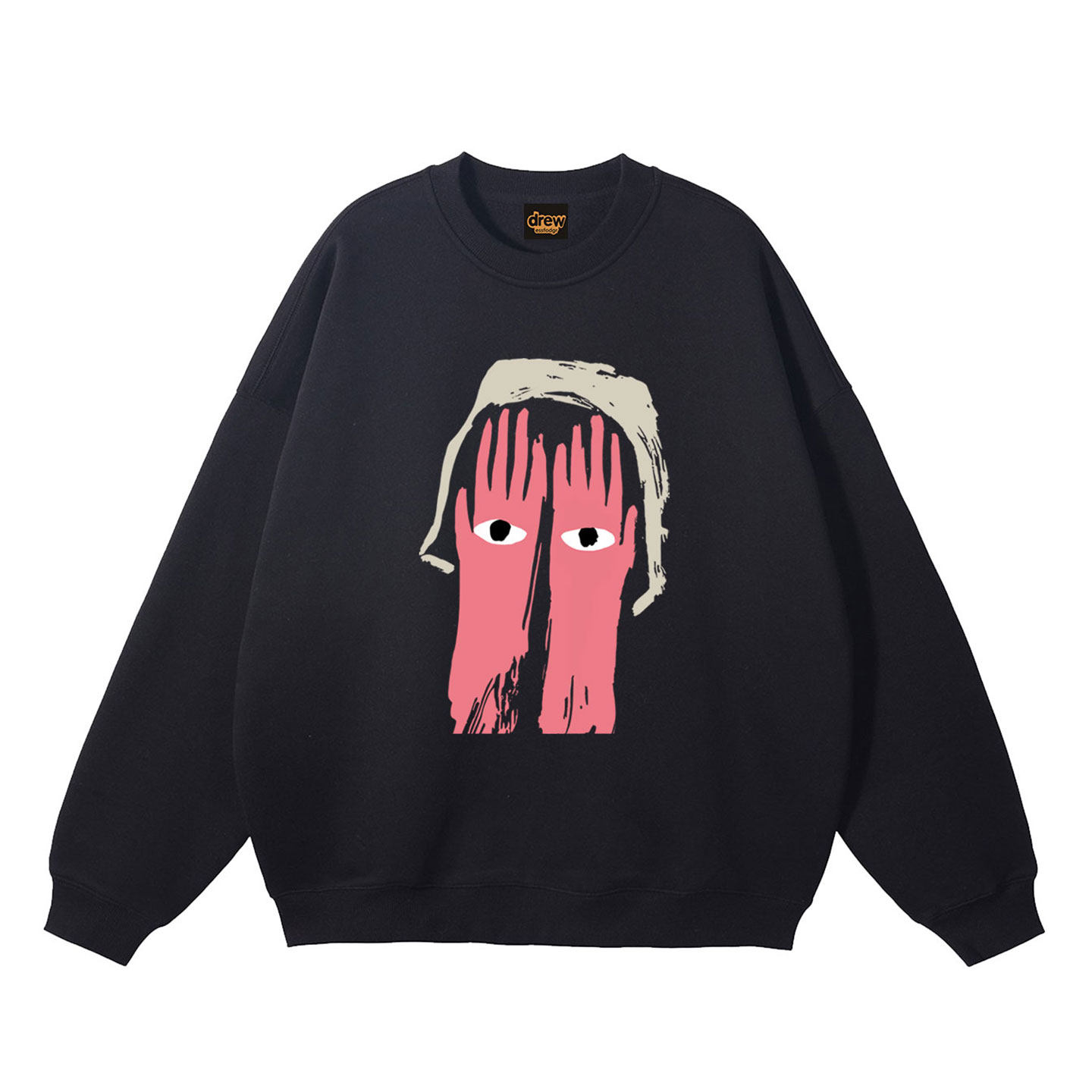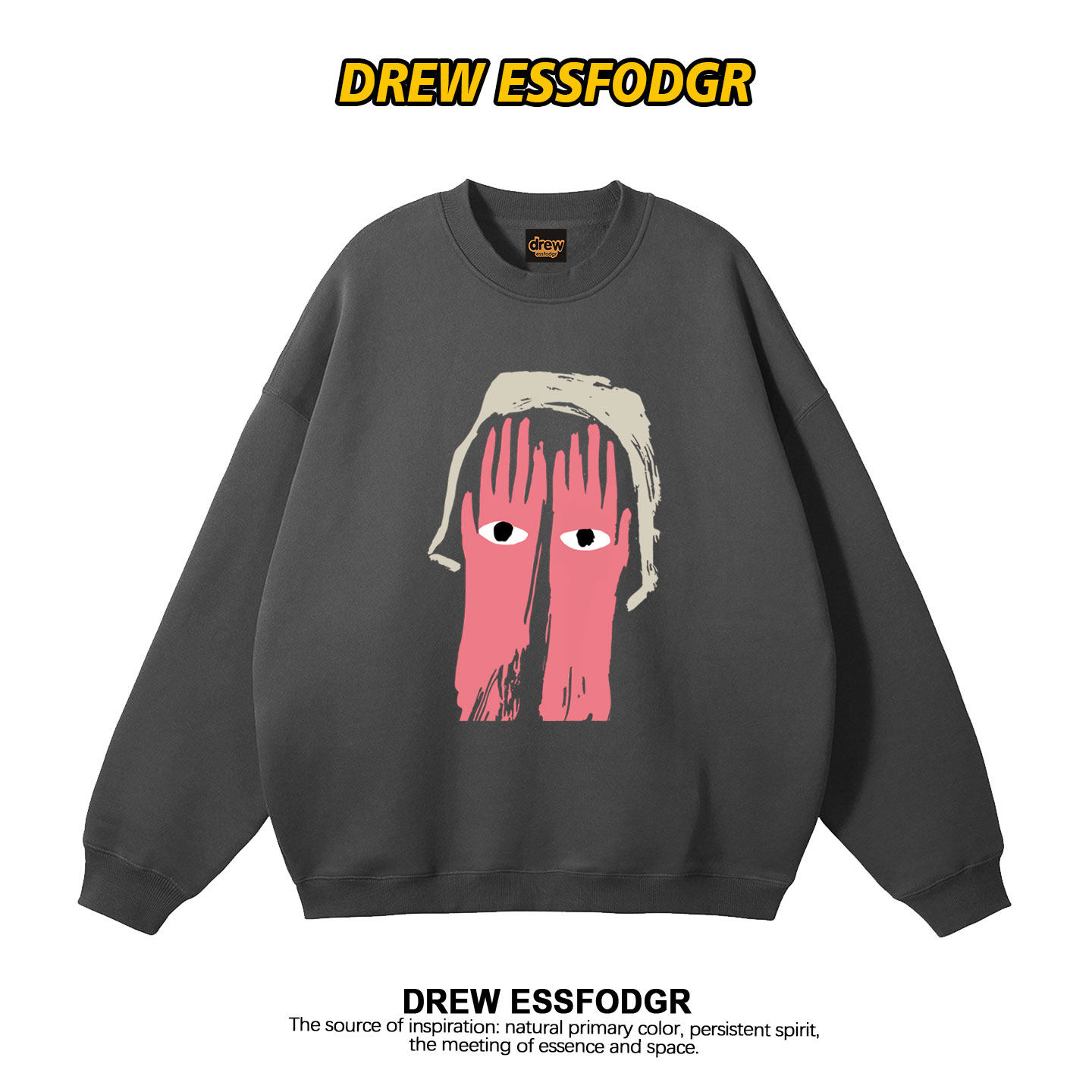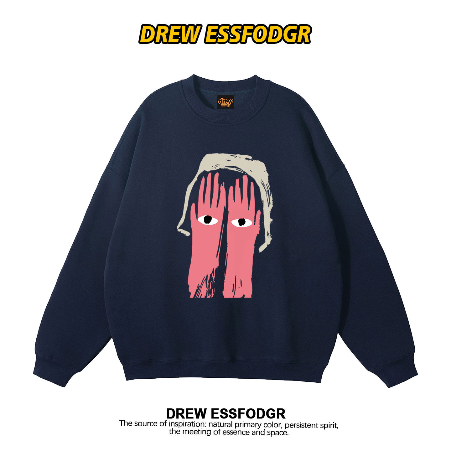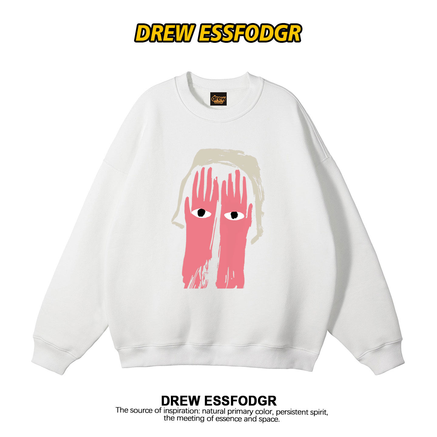 drew美式潮牌设计感涂鸦印花圆领卫衣男女街头复古宽松秋冬外套潮