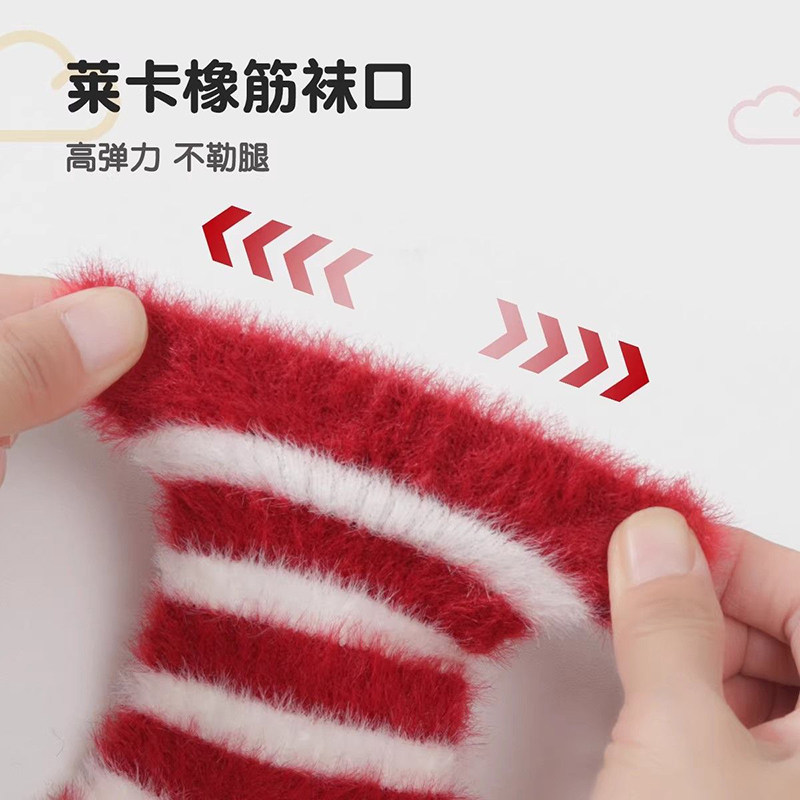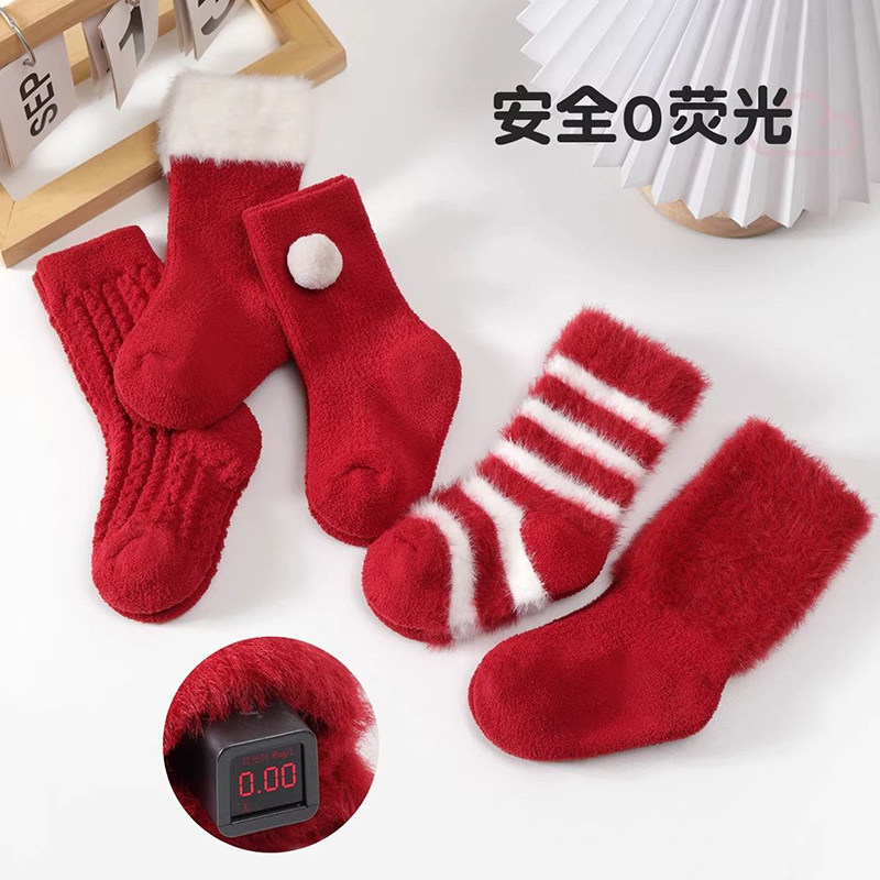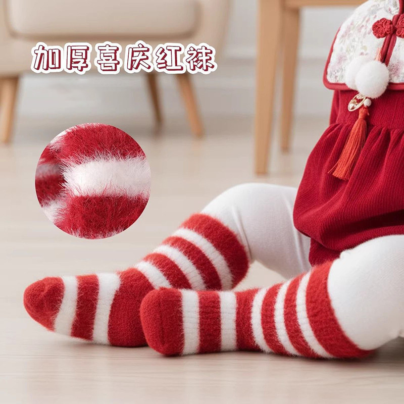 新生婴儿红袜子冬季中筒加绒宝宝红色新年袜本命年过年儿童新年袜