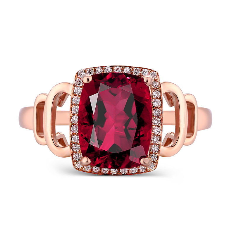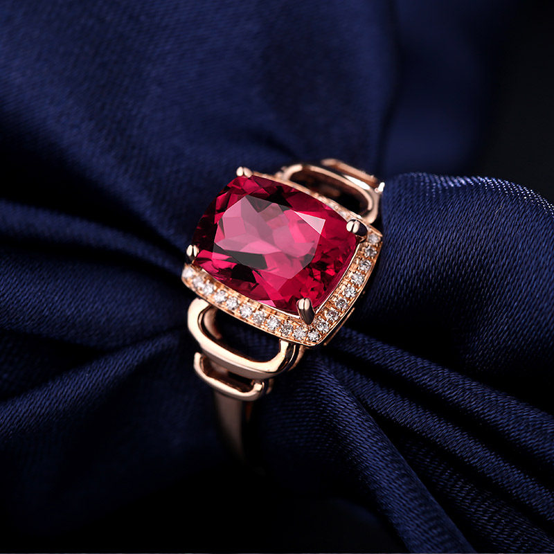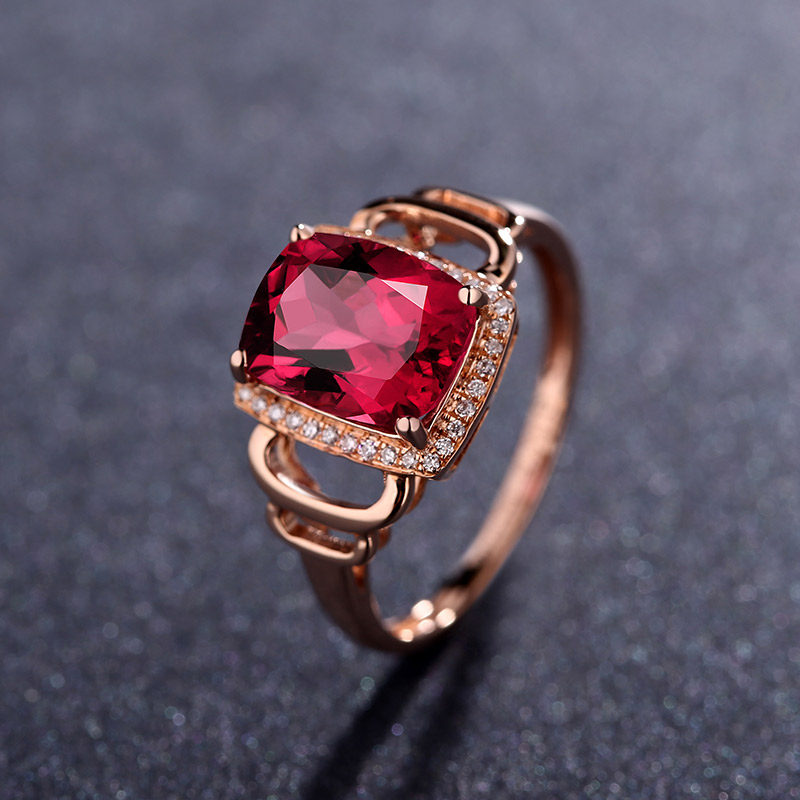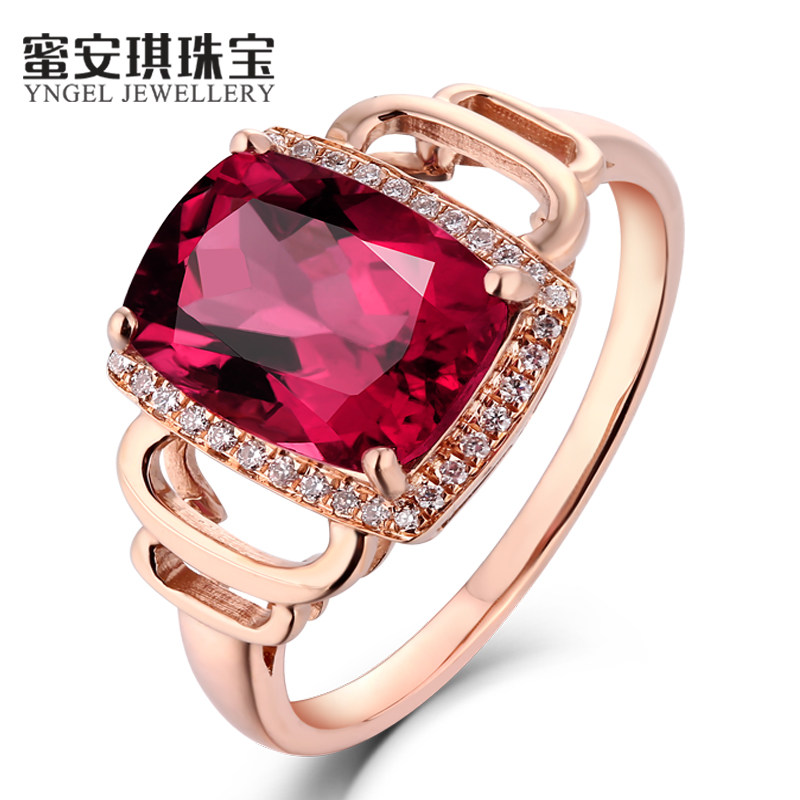 蜜安琪 2.65克拉鸽血红碧玺戒指女 18K金宝石镶嵌钻石戒指定制