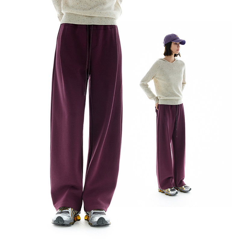 云上生活【绝绝紫】加厚休闲阔腿运动裤冬季直筒裤弯刀裤女下装