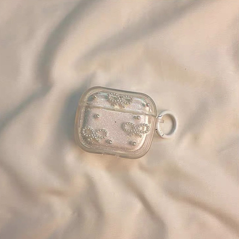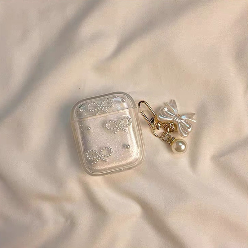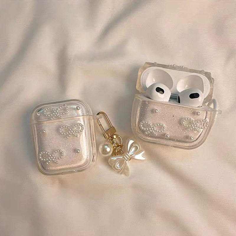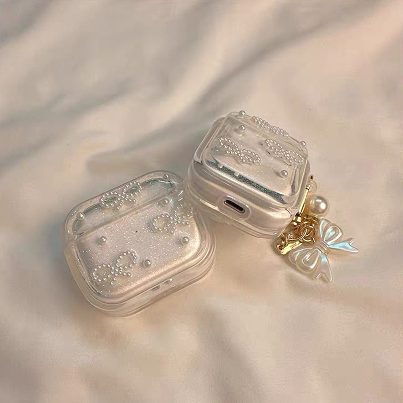 蝴蝶结珍珠挂件登山扣防摔壳适用苹果蓝牙耳机套Airpods4保护壳Airpodspro3吊坠Airpods1/2代闪粉ins珍珠领结