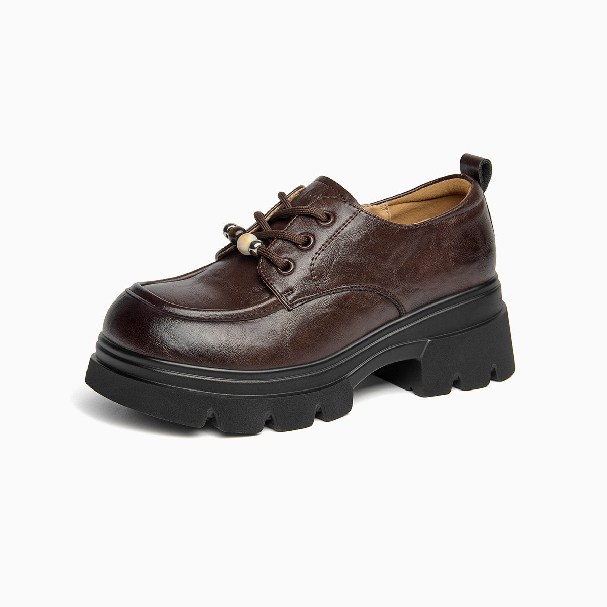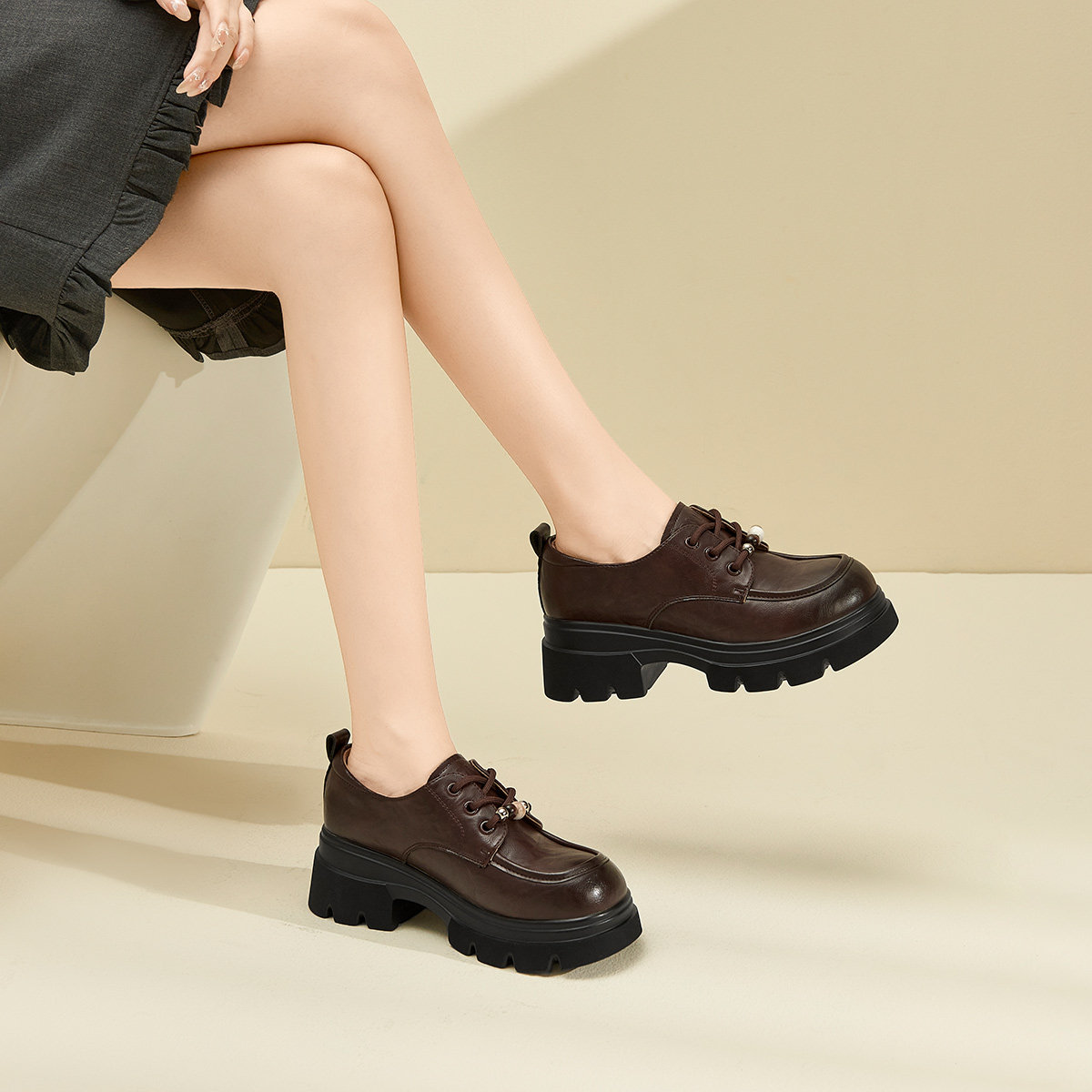 欧货真皮厚底小皮鞋女英伦风圆头加绒德比鞋小个子增高乐福鞋单鞋