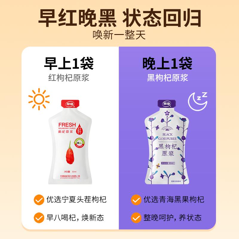 早康马年礼盒红黑枸杞原浆组合装 独立小袋装便携