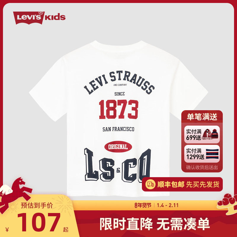 李维斯童装儿童夏季T恤短袖男童夏装大童2026新款男孩上衣半袖白t