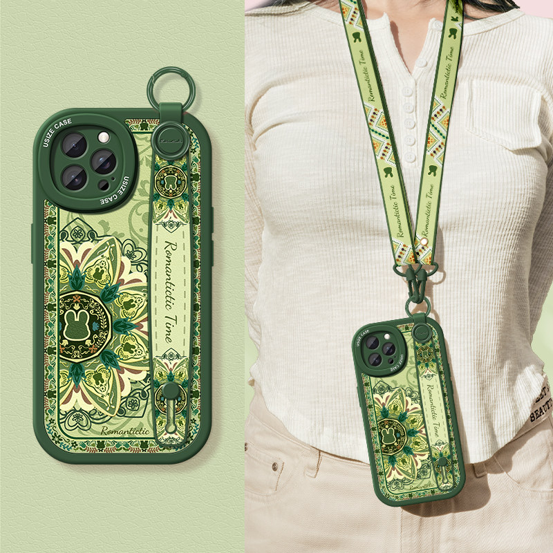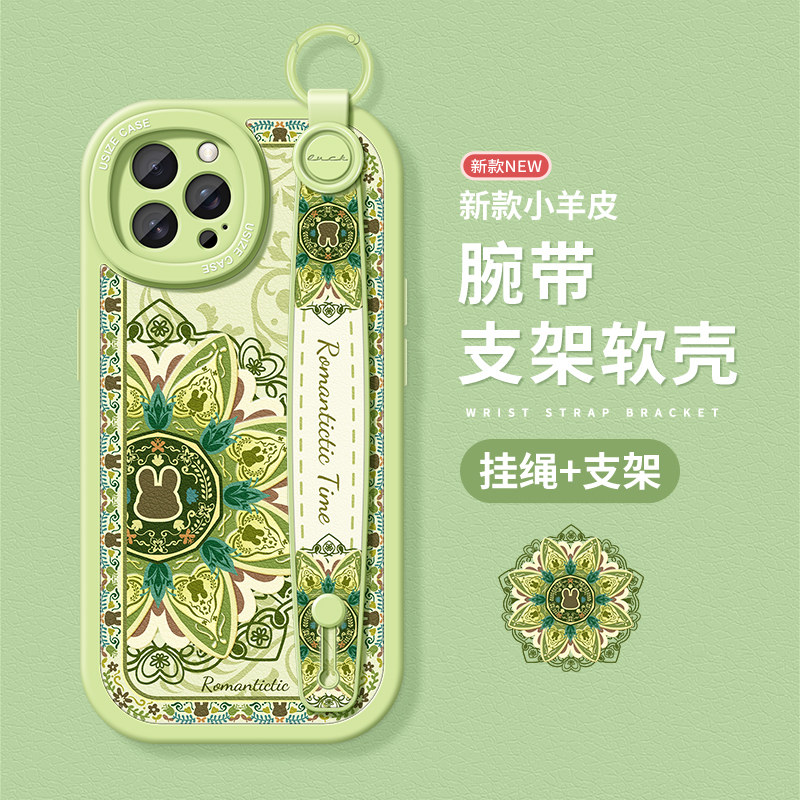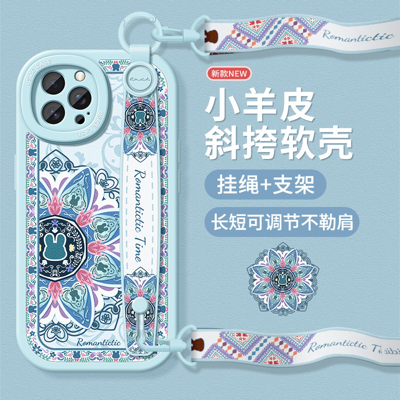 敦煌花朵适用苹果15手机壳16pro新款女iPhone14promax全包12防摔13pro腕带xs挂绳7plus斜跨6sp斜挎挂脖xr背带