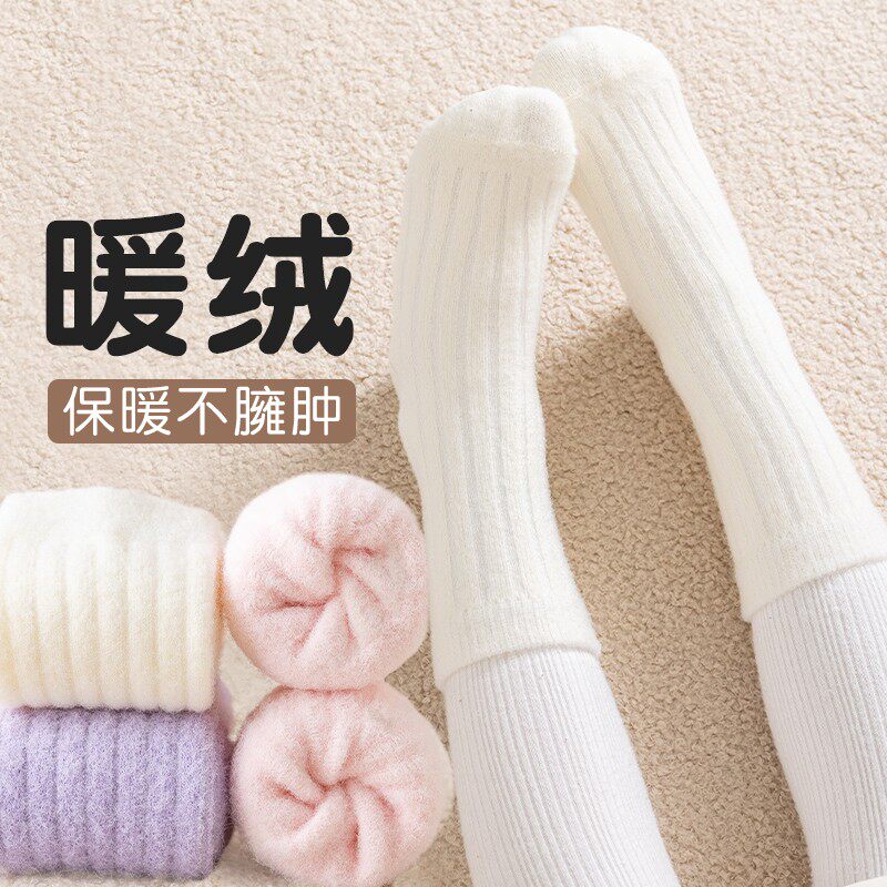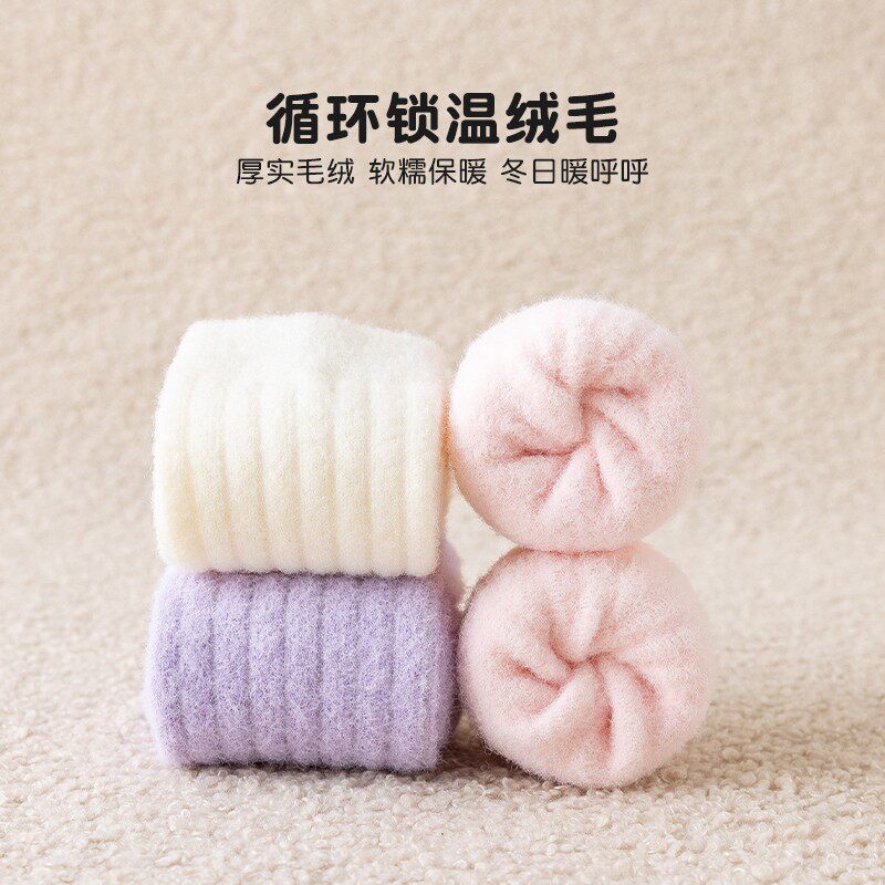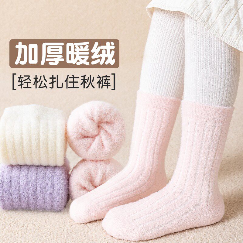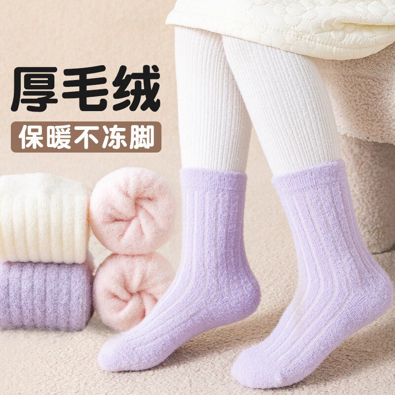 女童袜子加绒加厚冬季儿童保暖毛绒袜中大童女孩中筒吸汗双面绒