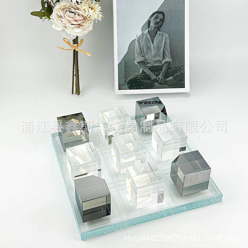 轻奢北欧水晶棋盘摆件样板间售楼处客厅民宿别墅玄关家居软装家饰