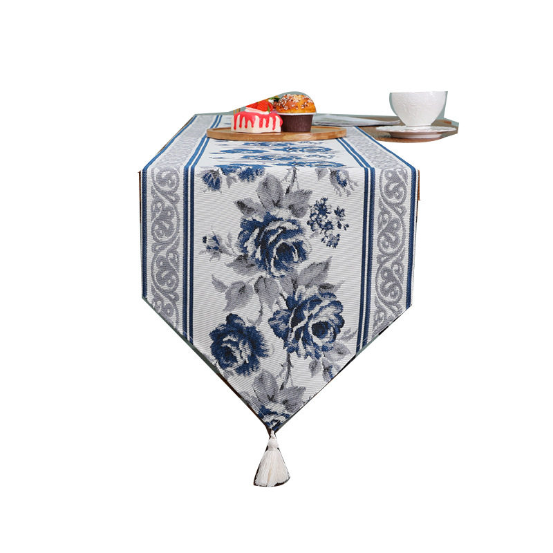 跨境新中式桌旗古典刺绣流苏桌旗餐桌布艺茶几装饰床旗跨境批发