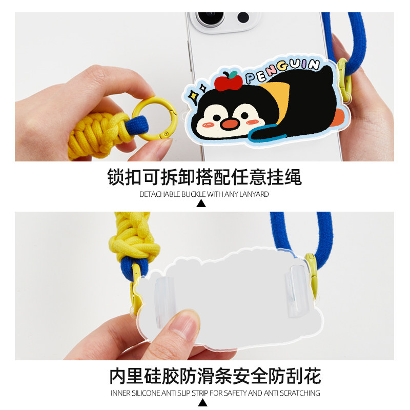 企鹅手机手机背夹挂绳长款通用可调节斜挎可背可拆卸网红手腕时尚女款手提高级防丢手机挂绳挂链短款背带挂脖