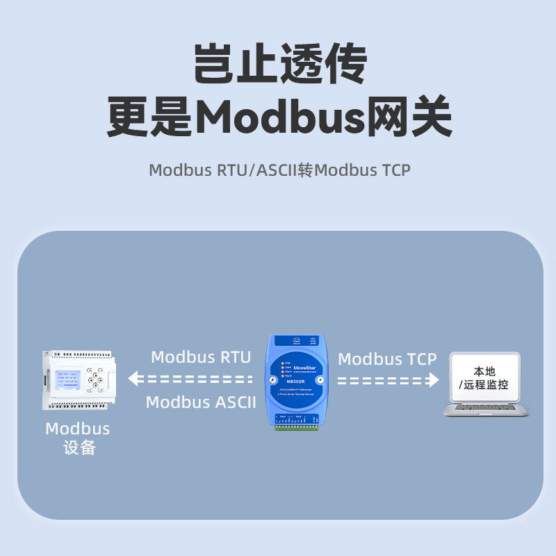 【MoweStar】移星工业级串口服务器2口RS232/485转以太网RJ45网口模块 ModbusTCP导轨式通讯网关 NS302R