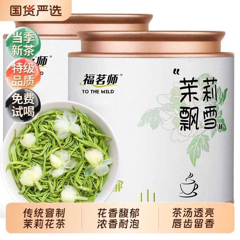茉莉花茶特级浓香型飘雪绿茶茶叶罐装自己喝2025新茶官方旗舰店