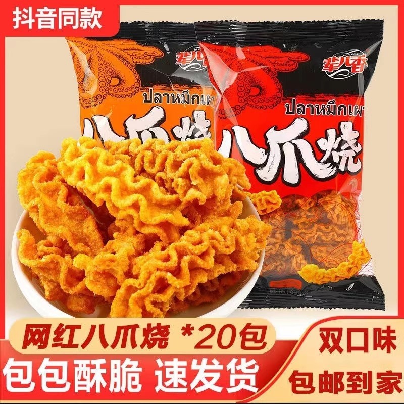 辈儿香八爪烧网红零食品八爪烧麻辣酱爆肉味披萨卷锅巴怀旧店