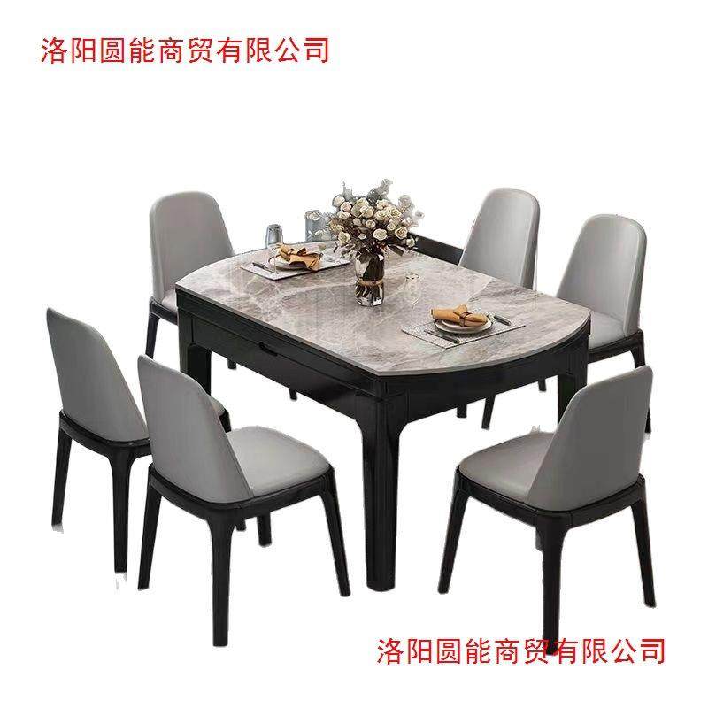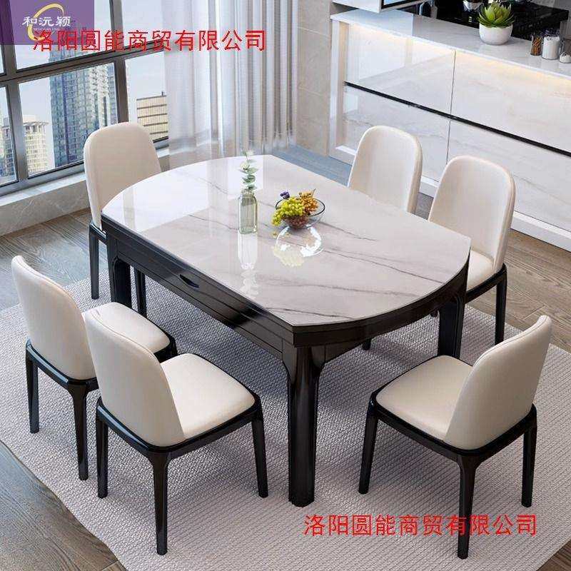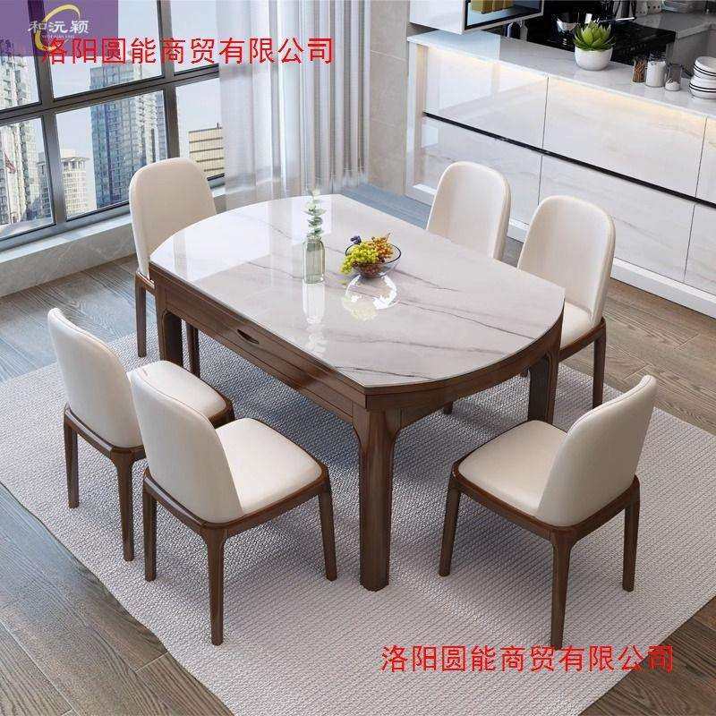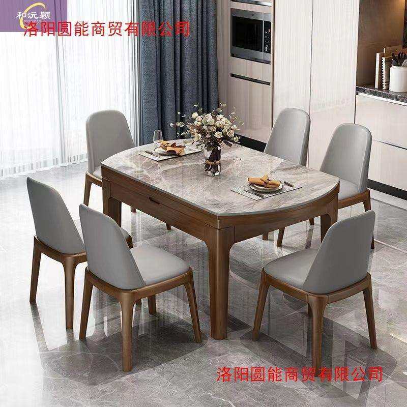 岩板餐桌家用静味可伸缩折叠圆桌实木大理石饭桌小户型客厅长方形