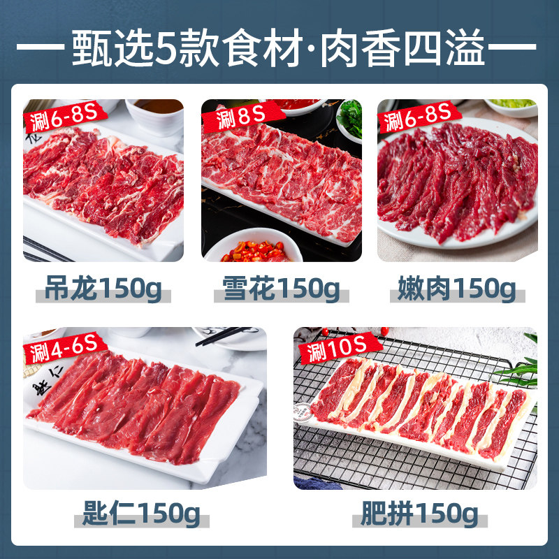 【蜜蜂心愿社】鲜正鲜潮汕牛肉火锅套餐吊龙雪花嫩牛匙仁5种组合