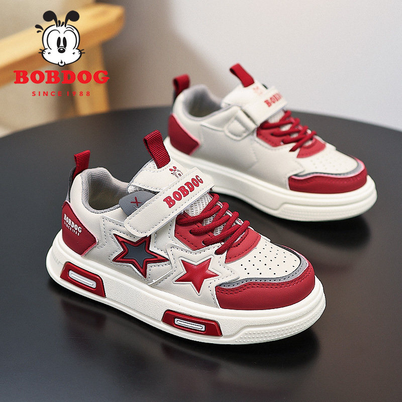 巴布豆女童鞋子春季皮面防水2026新款儿童板鞋低帮男童运动鞋软底
