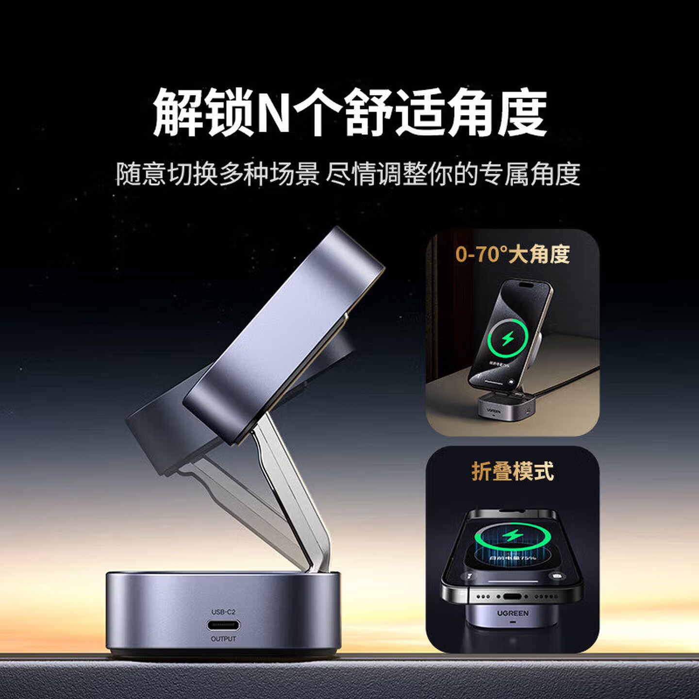 绿联(UGREEN)25W无线充电器QI2认证磁吸式适用苹果手机Airpods耳机手表无线充电器 【收纳款】