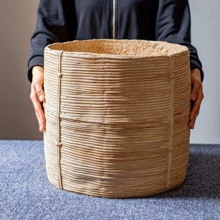 仿藤编花盆花篮水泥花器特大绿植盆器装饰套盆阳台花园