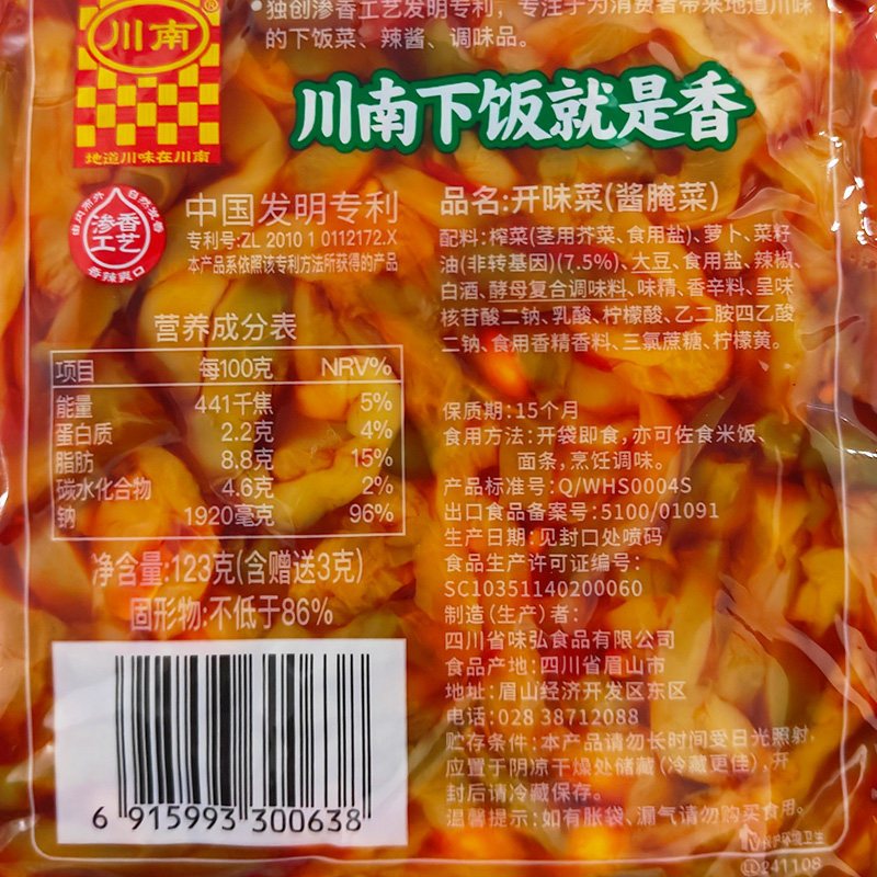 川南123g开味菜袋装榨菜四川特产泡咸菜下饭菜香辣小菜泡菜麻辣