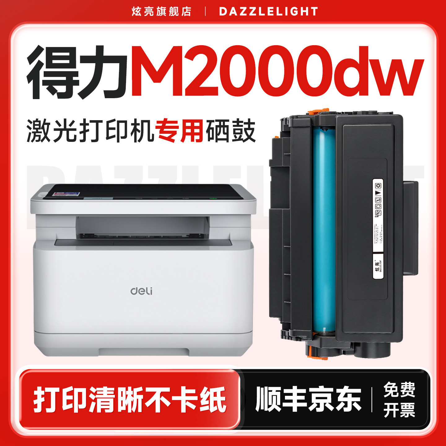 得力m2000dw硒鼓 适用原装得力m2000dnw硒鼓t1 t2碳粉M2000nw/m2000w墨盒墨粉粉盒m2500dw硒鼓激光打印机晒鼓
