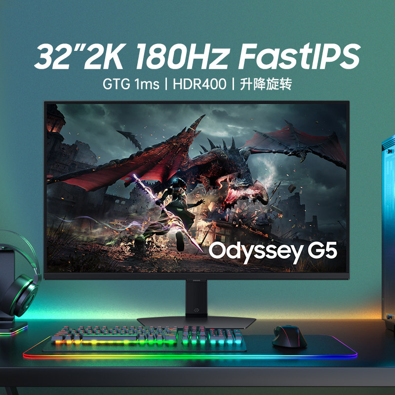 三星32英寸2K180HZ电竞显示器FastIPS电脑游戏外接屏幕S32DG502EC