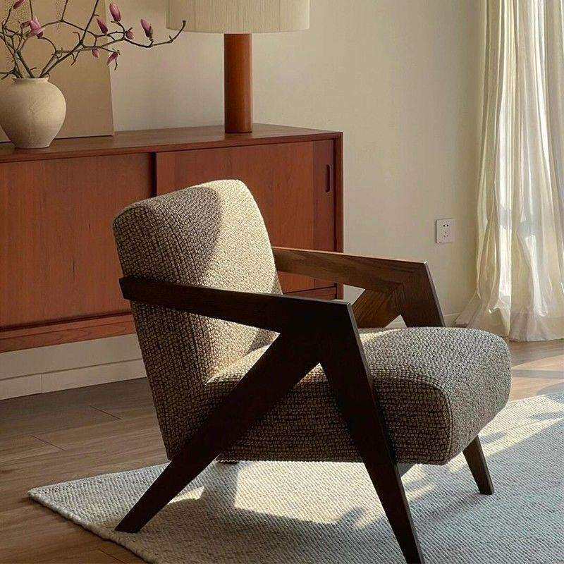 单人沙发椅法式中古客厅阳台休闲椅子实木设计师懒人沙发椅