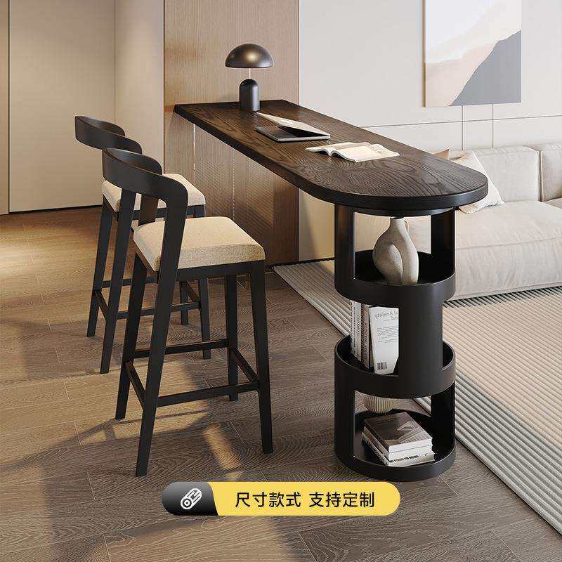 法式实木吧台桌高脚桌靠墙客厅隔断亚克力长条桌沙发吧台边柜