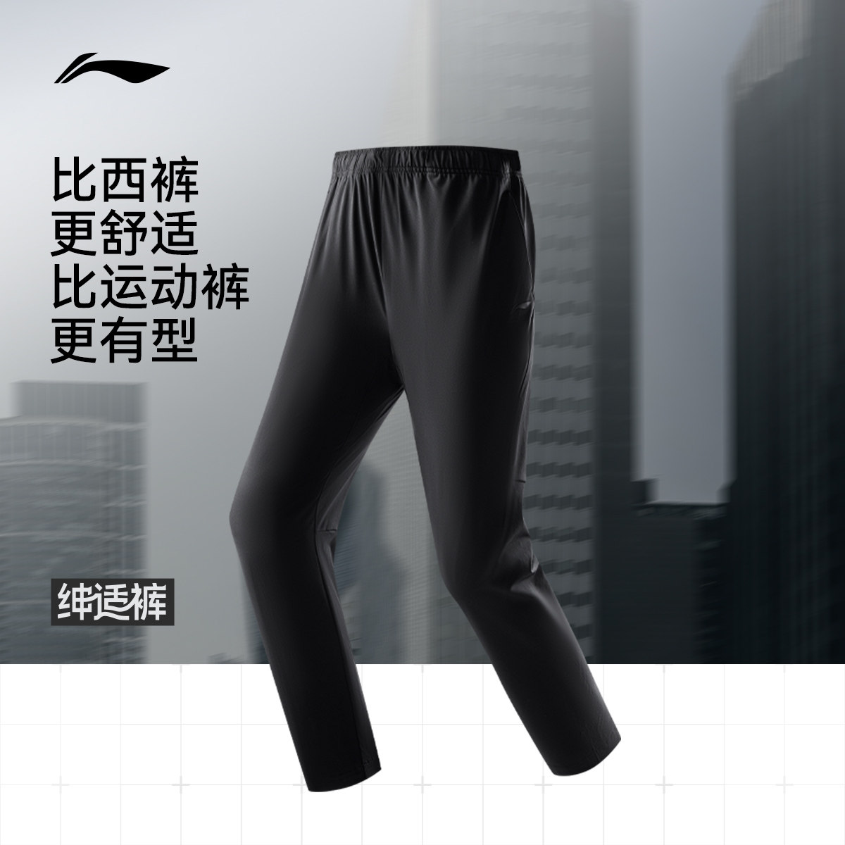 李宁绅适裤丨运动裤男新款春季速干黑色通勤跑步健身直筒休闲长裤