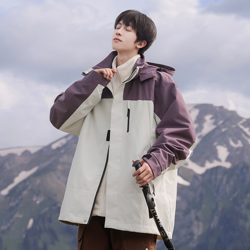 骆驼男装夹克春秋保暖三合一户外三防冲锋衣外套内胆防水徒步登山