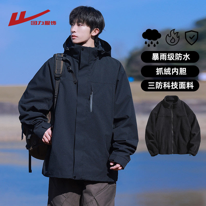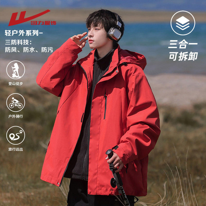 回力朱雀红三合一冲锋夹克男士春秋季2025新款户外防风衣男生外套