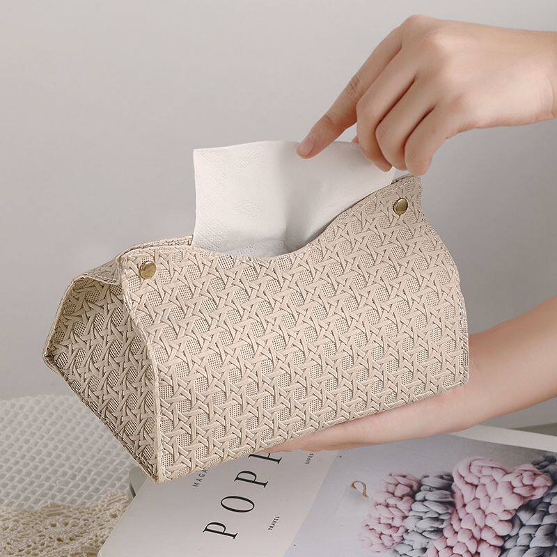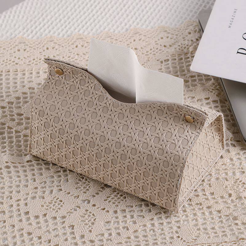高级感编织纹抽纸盒车载摆件餐巾纸盒家用纸巾客厅餐厅桌面收纳盒