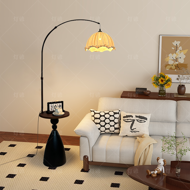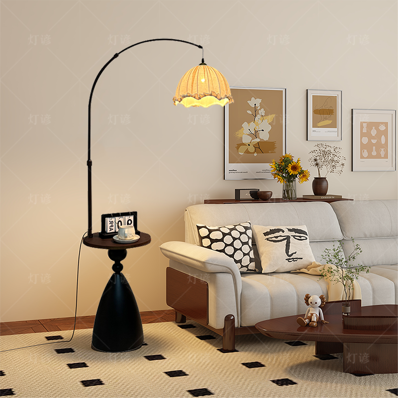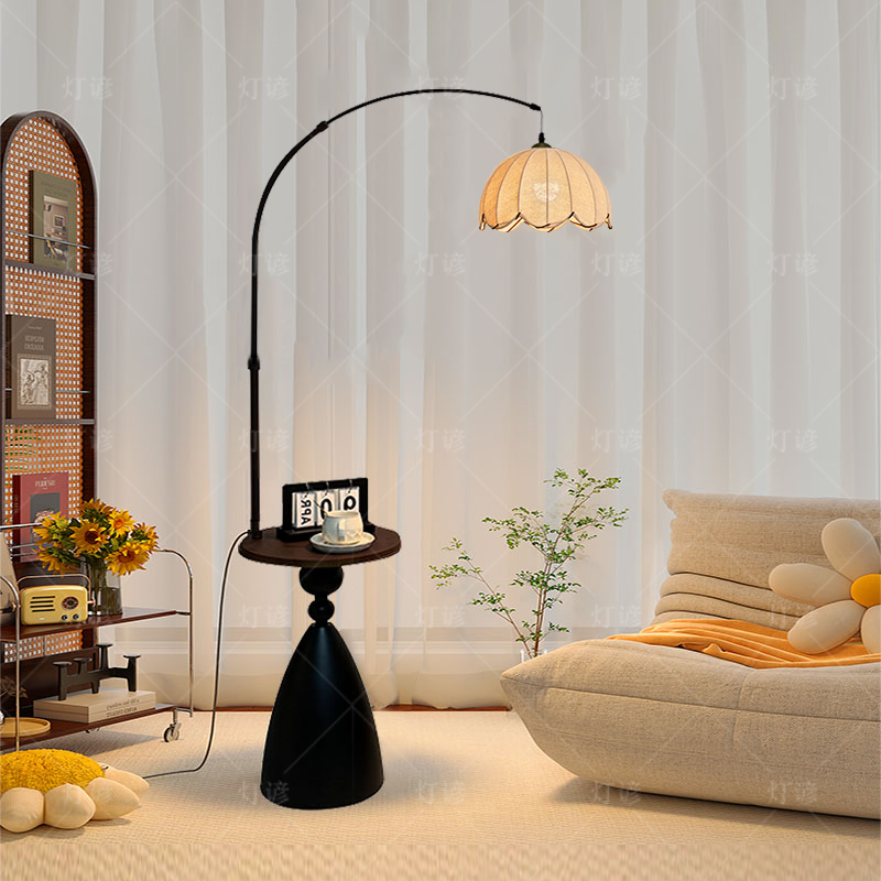 法式复古风落地灯客厅钓鱼灯新款沙发边几中古风摆件一体台灯温馨