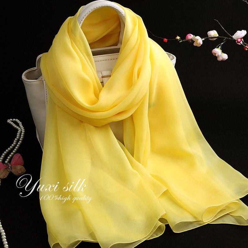 浅黄色纯色冬季长款真丝丝巾披肩女薄纱巾春秋冬夏季2024围巾
