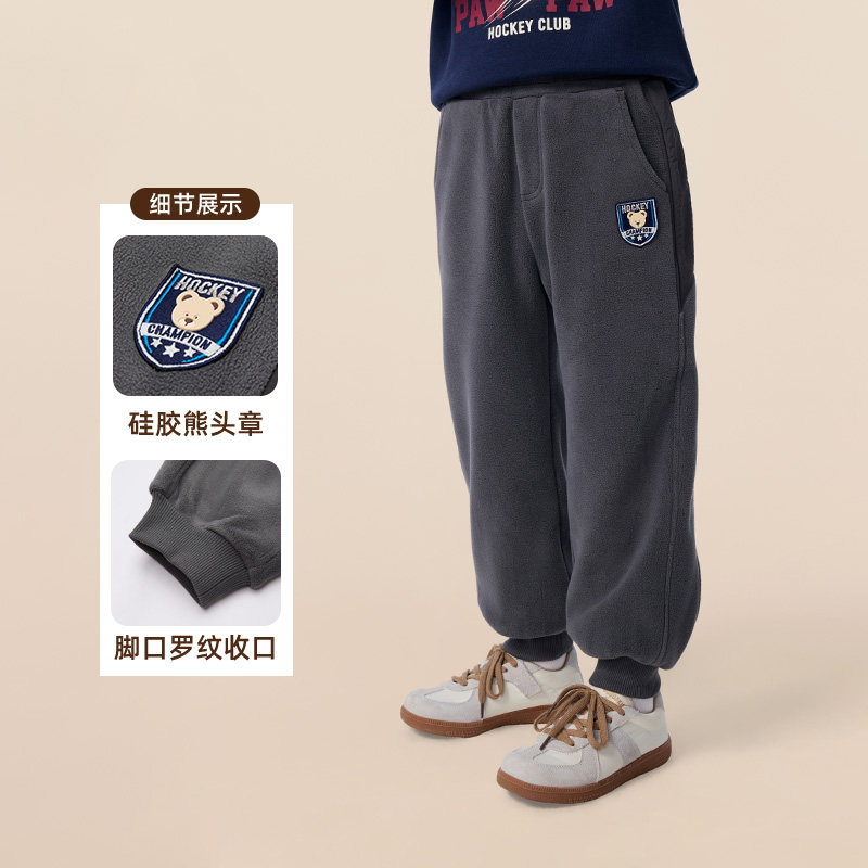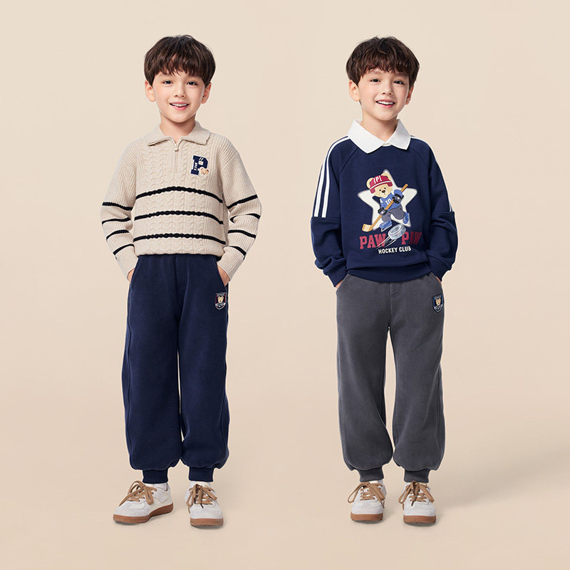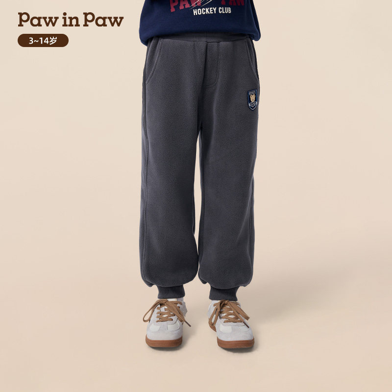 【抗静电】PawinPaw卡通小熊童装25年冬季新款男童加绒休闲裤宽松