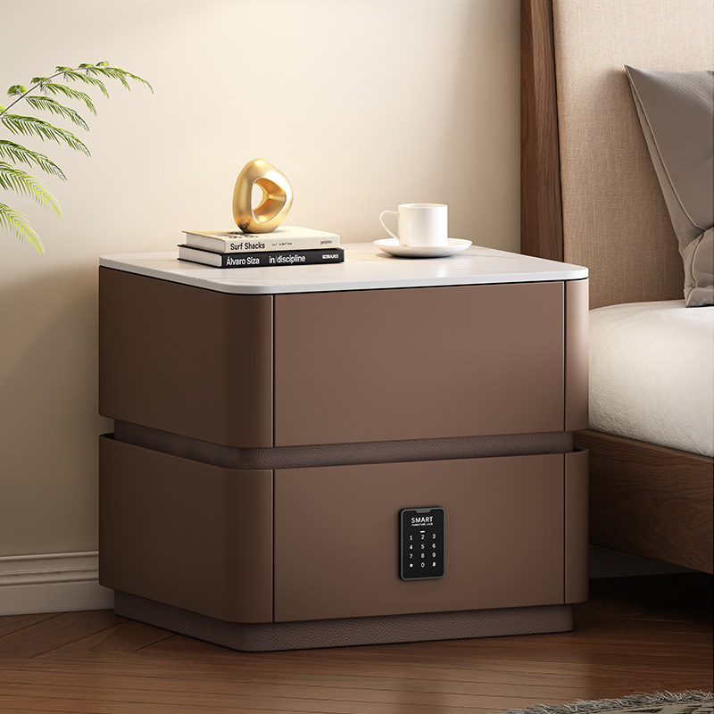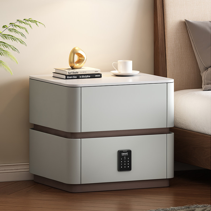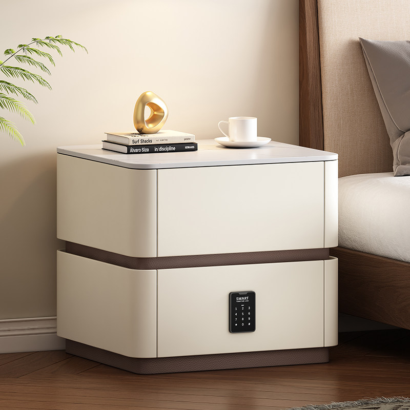 2026新款实木岩板床头柜高级感密码锁家用卧室床边收纳柜抽屉台面