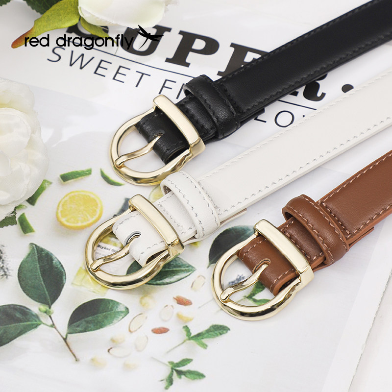 红蜻蜓黑色女士皮带2025新款裙子收腰腰带休闲百搭牛仔裤针扣裤带