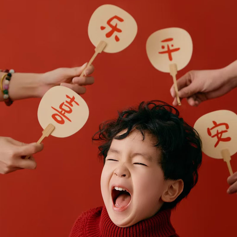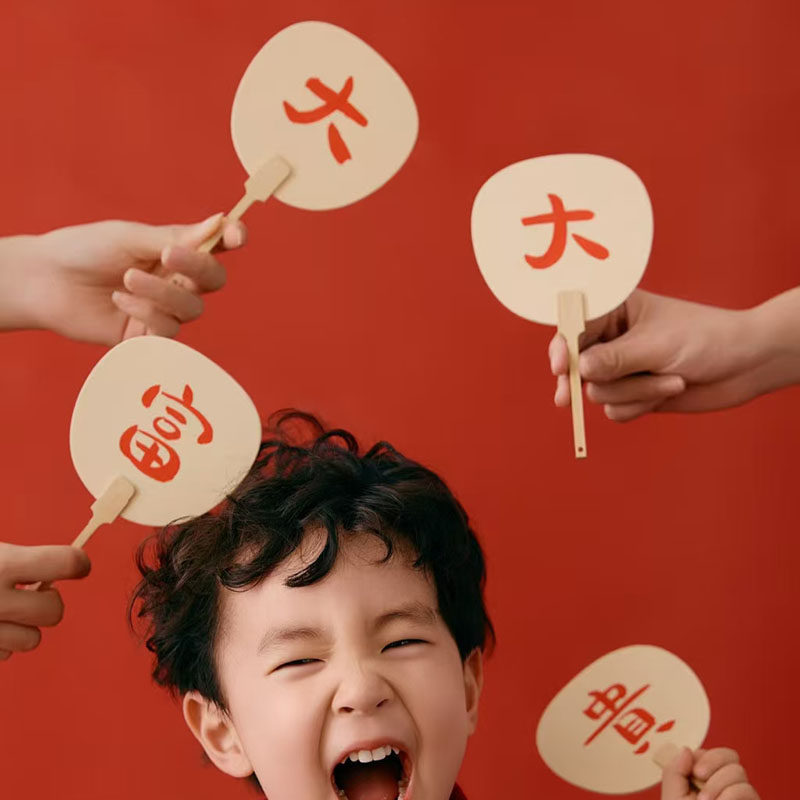 新年喜庆中国风拍照道具儿童摄影艺术照写真迷你小扇子过年居家